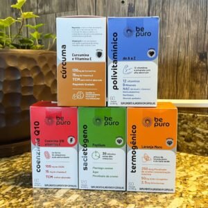 A linha Be Puro de suplementos (Coenzima Q10, Termogênico, Sacietógeno, Polivitamínico, Vitamina D3 + K2)